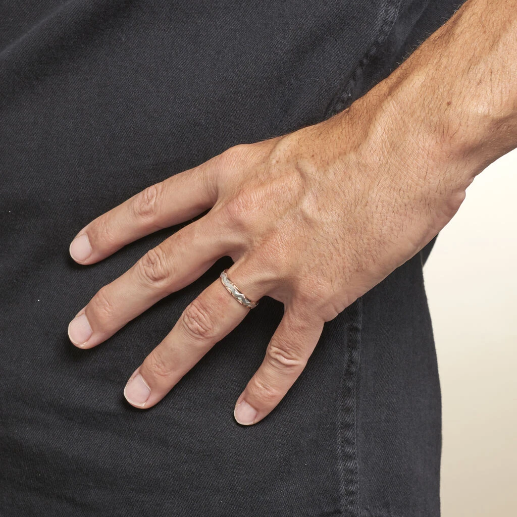 Alliance Or Bicolore Rose Et Blanc Rhodie 375/1000 Fantaisie Motif Vague 4mm
