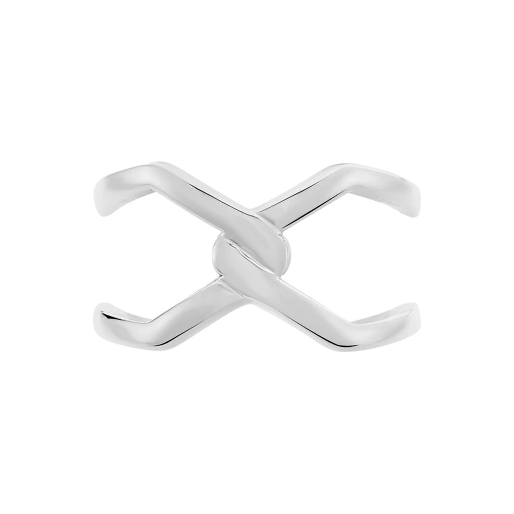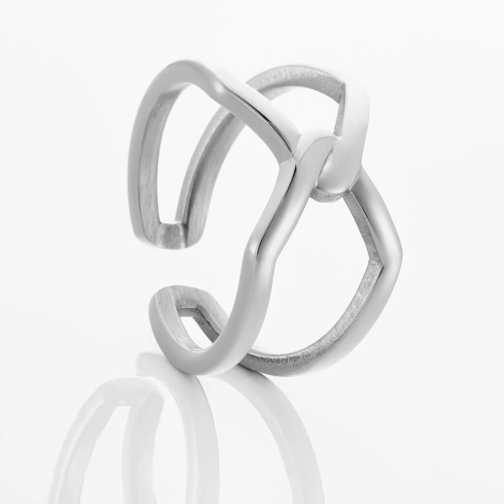 Bague Acier Ouvert Forme Geometrique Croisée Ajourée