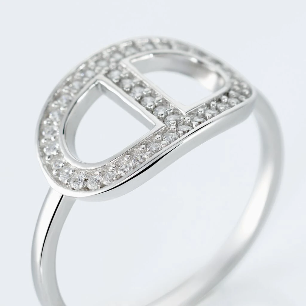 Bague Argent Blanc 925/1000 Maillon Pavage Oxydes De Zirconium