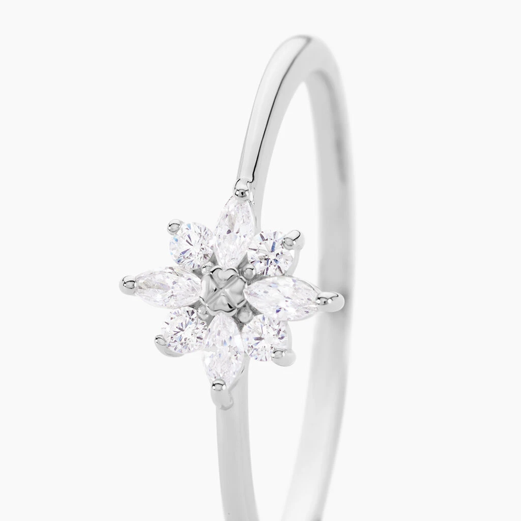 Bague Argent Blanc 925/1000 Motif Etoile Oxydes De Zirconium Ronde Et Navette