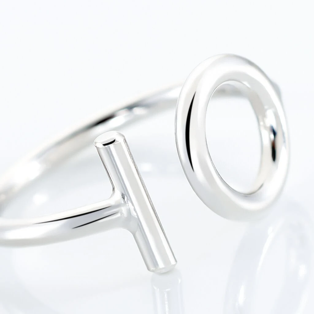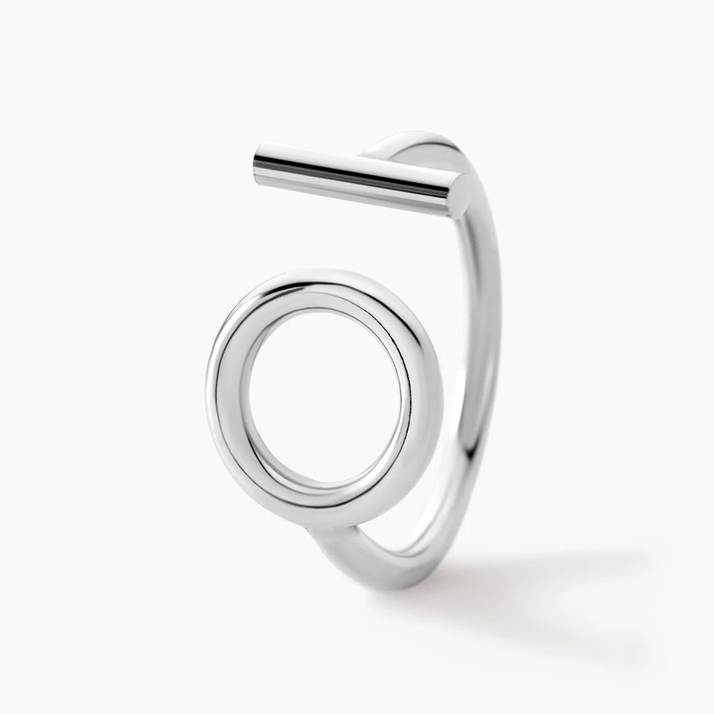 Bague Argent Blanc 925/1000 Ouverte Cercle Ajoure Et Barrette