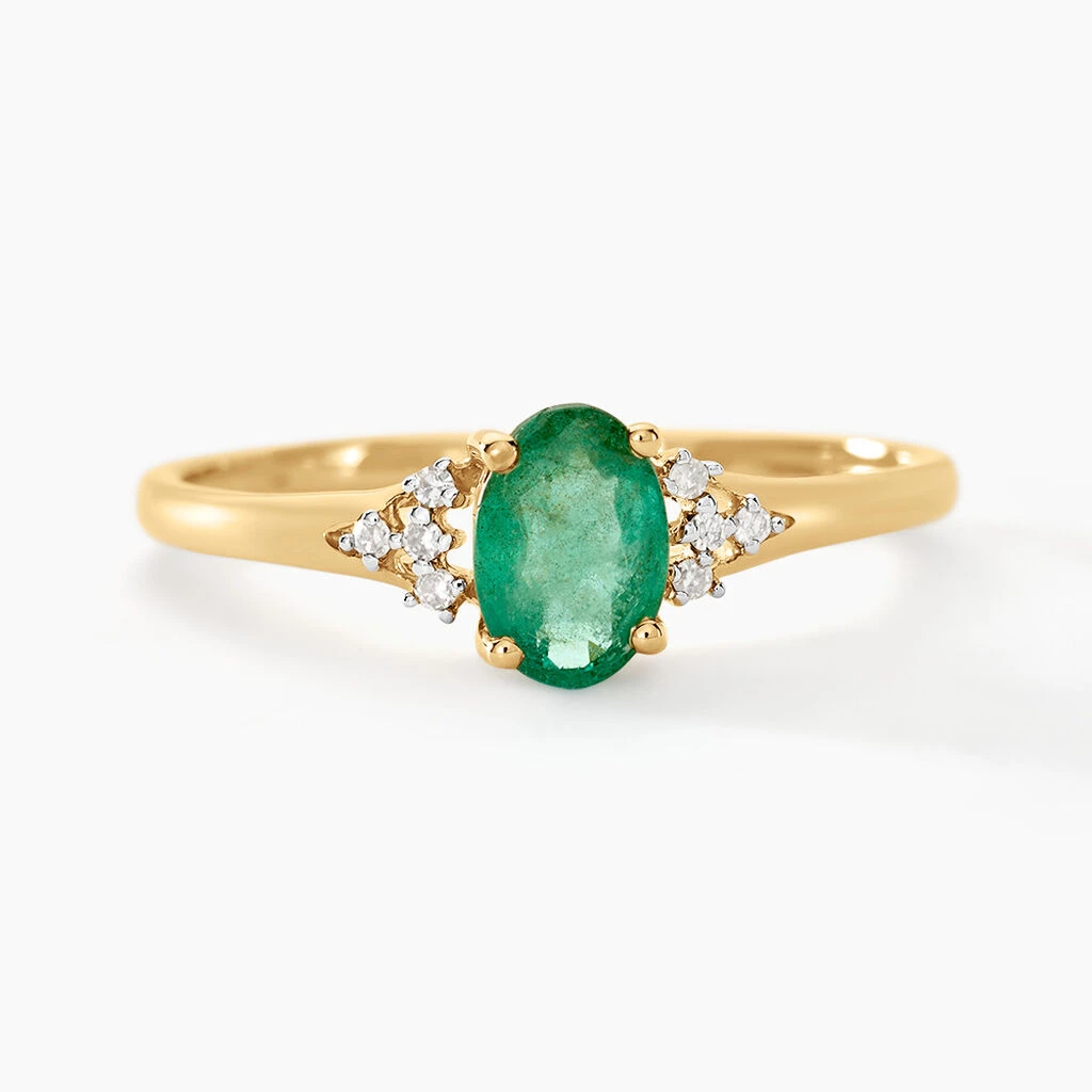 Bague Or Jaune 375/1000 Emeraude Et Diamants