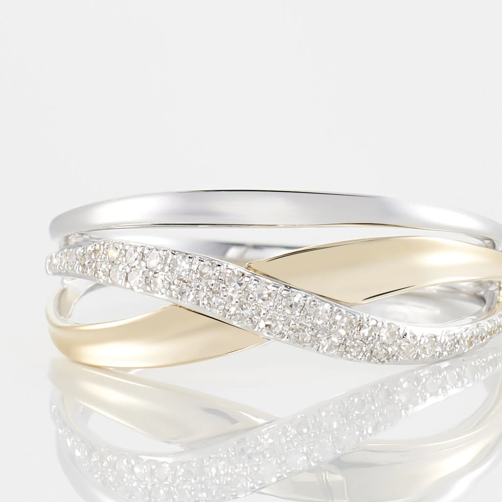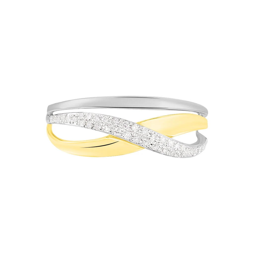 Bague Or Bicolore 375/1000 Et Diamants Blancs Croix