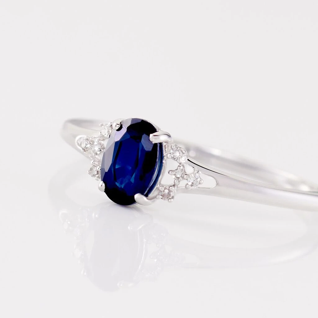 Bague Or Blanc 375/1000 Saphir Oval 0.55ct Et Diamants