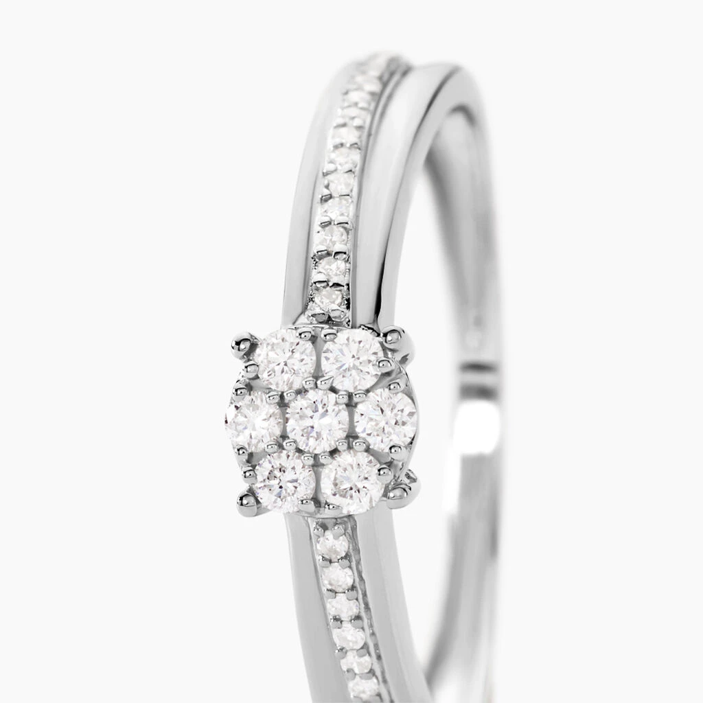 Bague Or Blanc 375/1000 Multipierre Accompagne Vrille Pavage Diamants