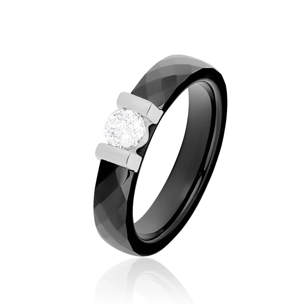 Bague Solitaire Ceramik Design Argent Oxyde De Zirconium Et Céramique