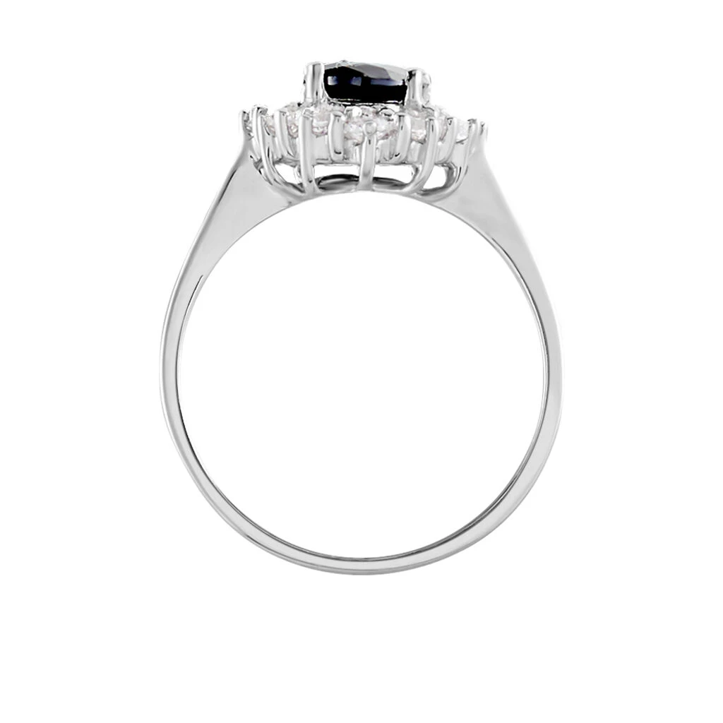 Bague Solitaire Argent Blanc 925/1000 Oxyde De Zirconium Noir Entourage Oxydes De Zirconium Serti Griffes Larg2mm