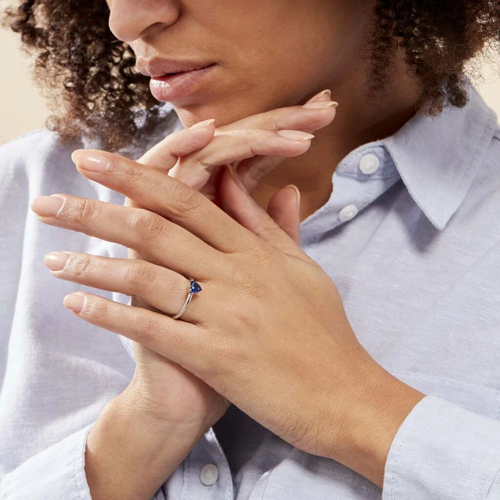 Bague Solitaire Argent Blanc 925/1000 Cœur Serti Griffes Oxyde De Zirconium Bleu