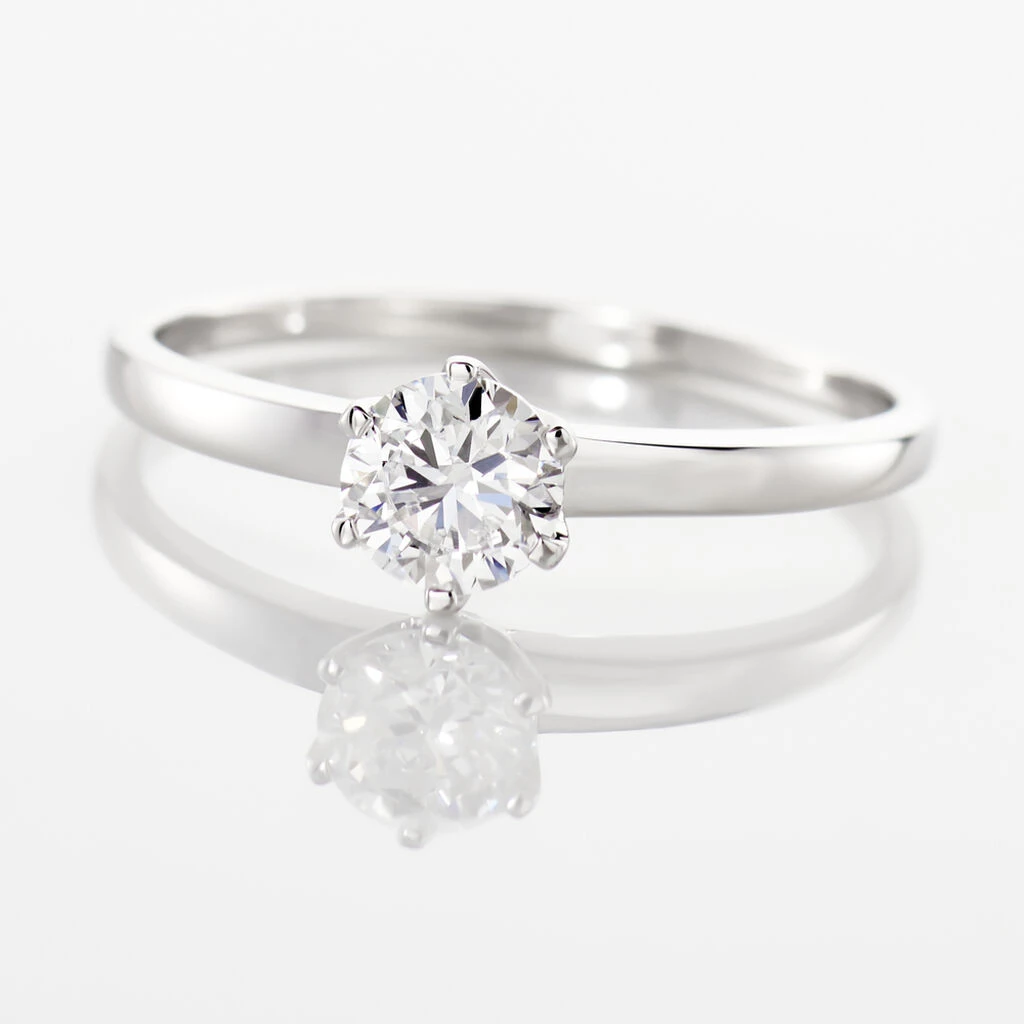 Solitaire Or Blanc 750/1000 Diamant Central Synthetique 0.50cts Serti 6 Griffes