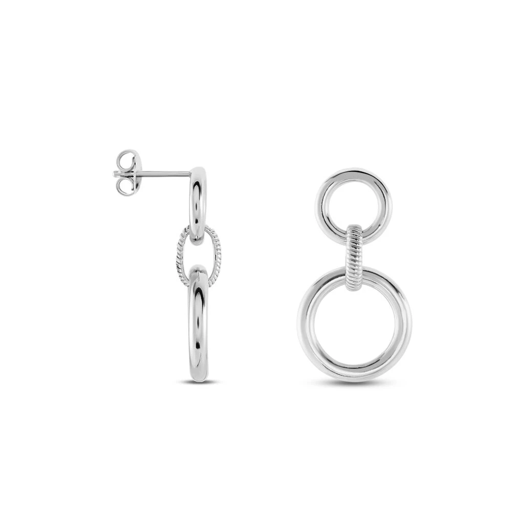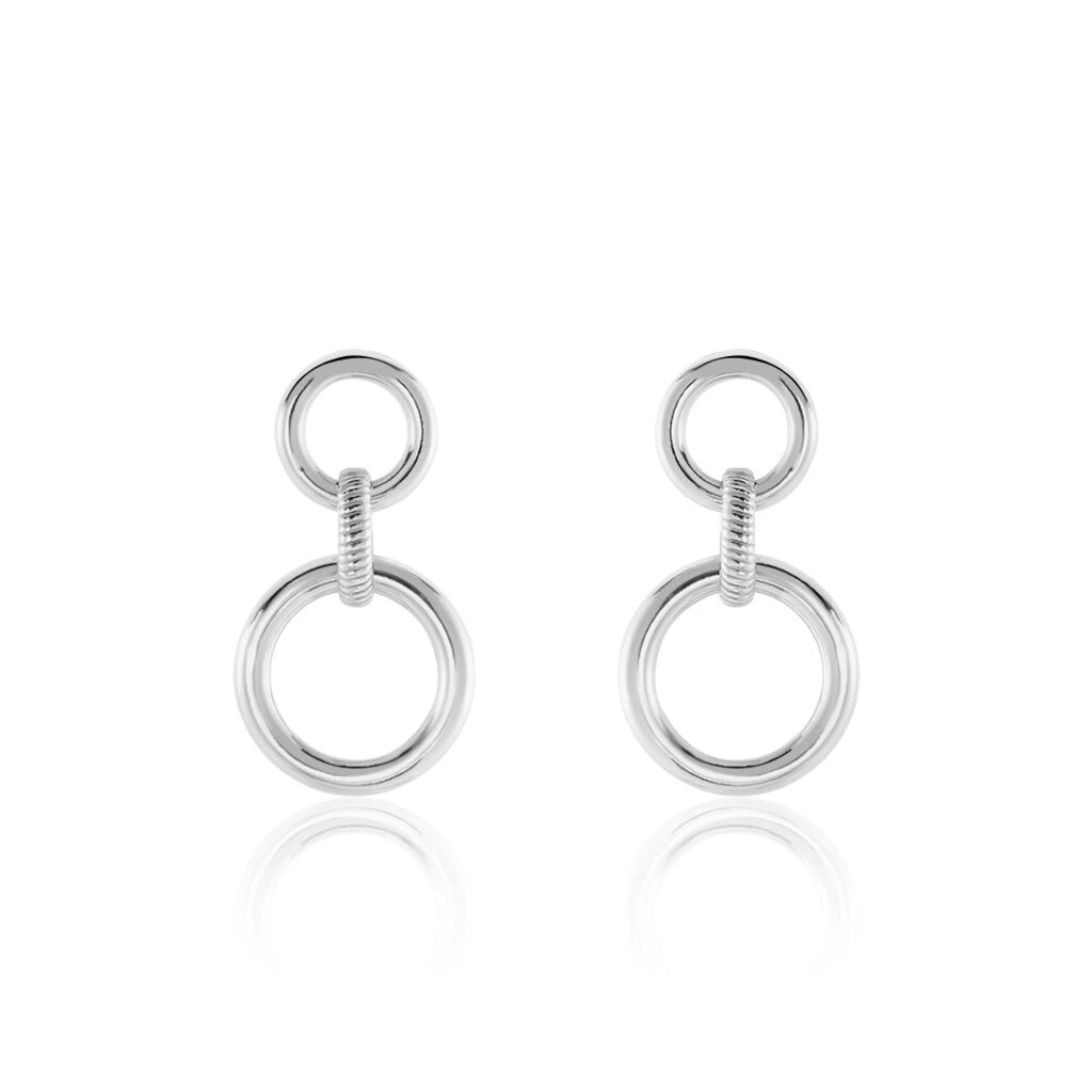 Boucles D’oreilles Pendantes Argent Blanc 925/1000 Double Cercles