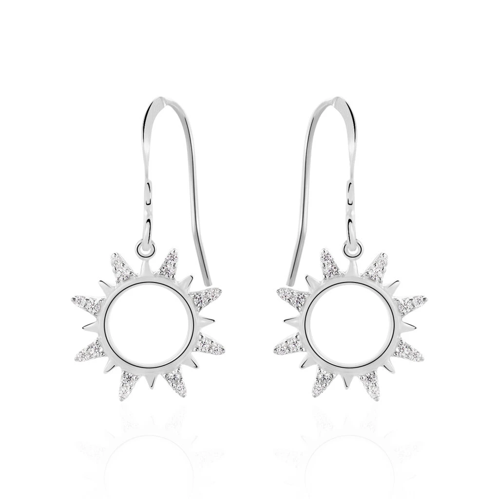 Boucles D’oreilles Pendantes Argent Blanc 925/1000 Motifs Soleil Oxydes De Zirconium