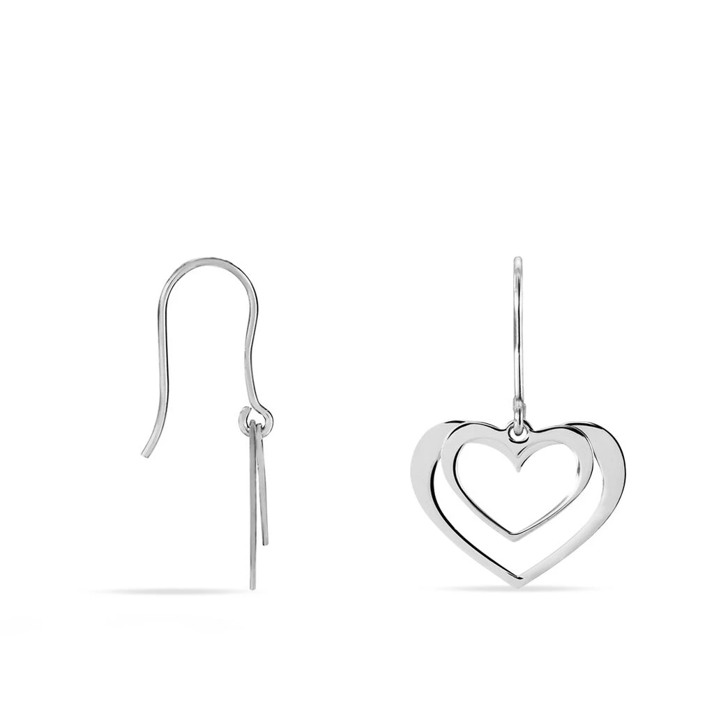 Boucles D’oreilles Pendantes Argent Blanc 925/1000 Double Coeurs Ajoures