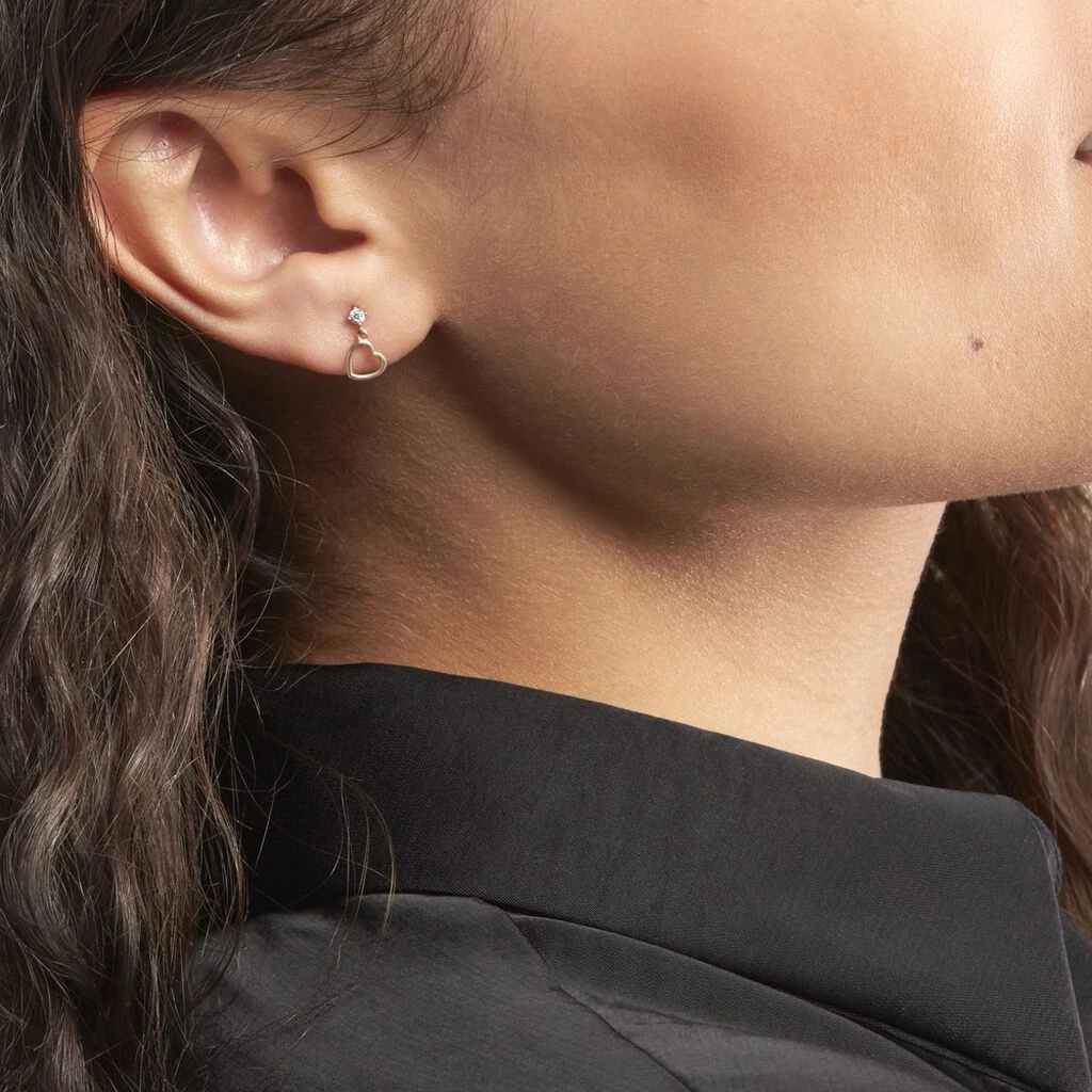 Apportez davantage de style à votre look avec ces ravissantes boucles d’oreilles en or jaune. Elles mettent en valeur votre visage avec leur pendant en forme de cœur. Deux pierres blanches sont disposées harmonieusement pour sublimer la paire. Ces boucles d’oreilles accessoirisent toutes les tenues.
