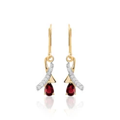 Boucles D’oreilles Plaqué Or Et Oxydes De Zirconium Rouges Et Blancs