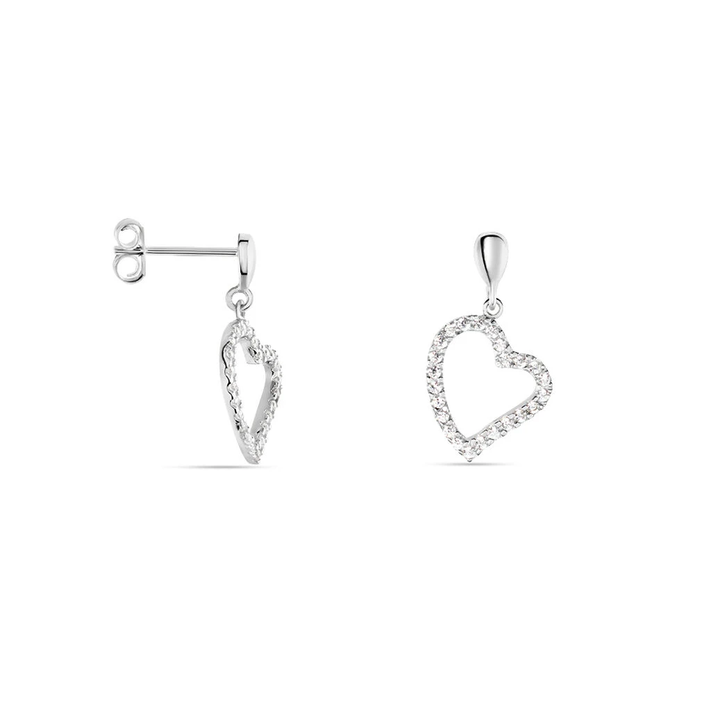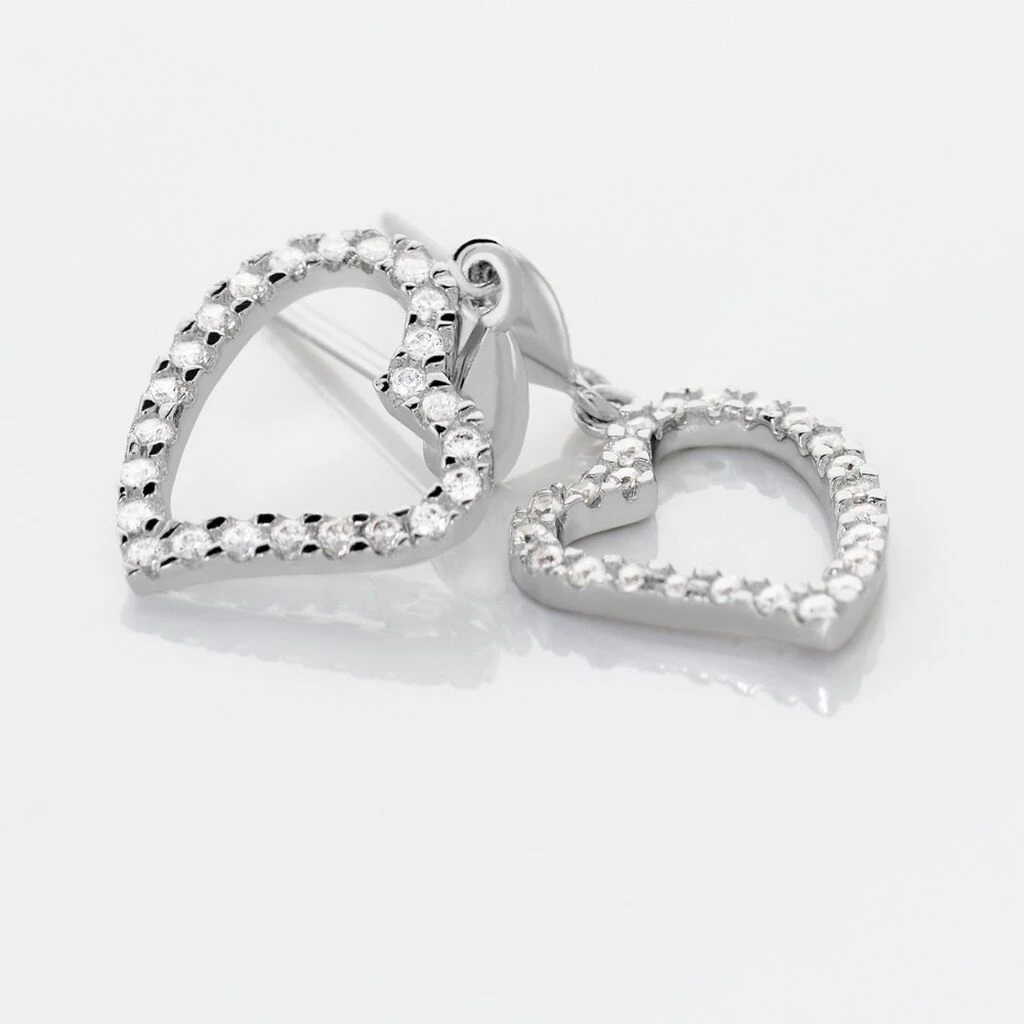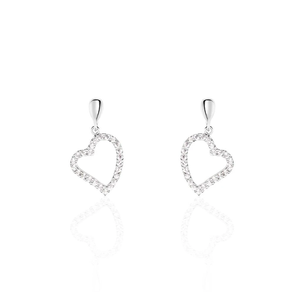 Boucles D’oreilles Pendantes Argent 925/1000 Cœurs Ajourés Oxydes De Zirconium