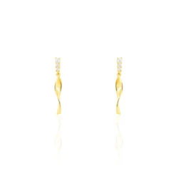 Boucles D’oreilles Or Jaune 375/1000 Pendantes Torsades Et Oxydes De Zirconium