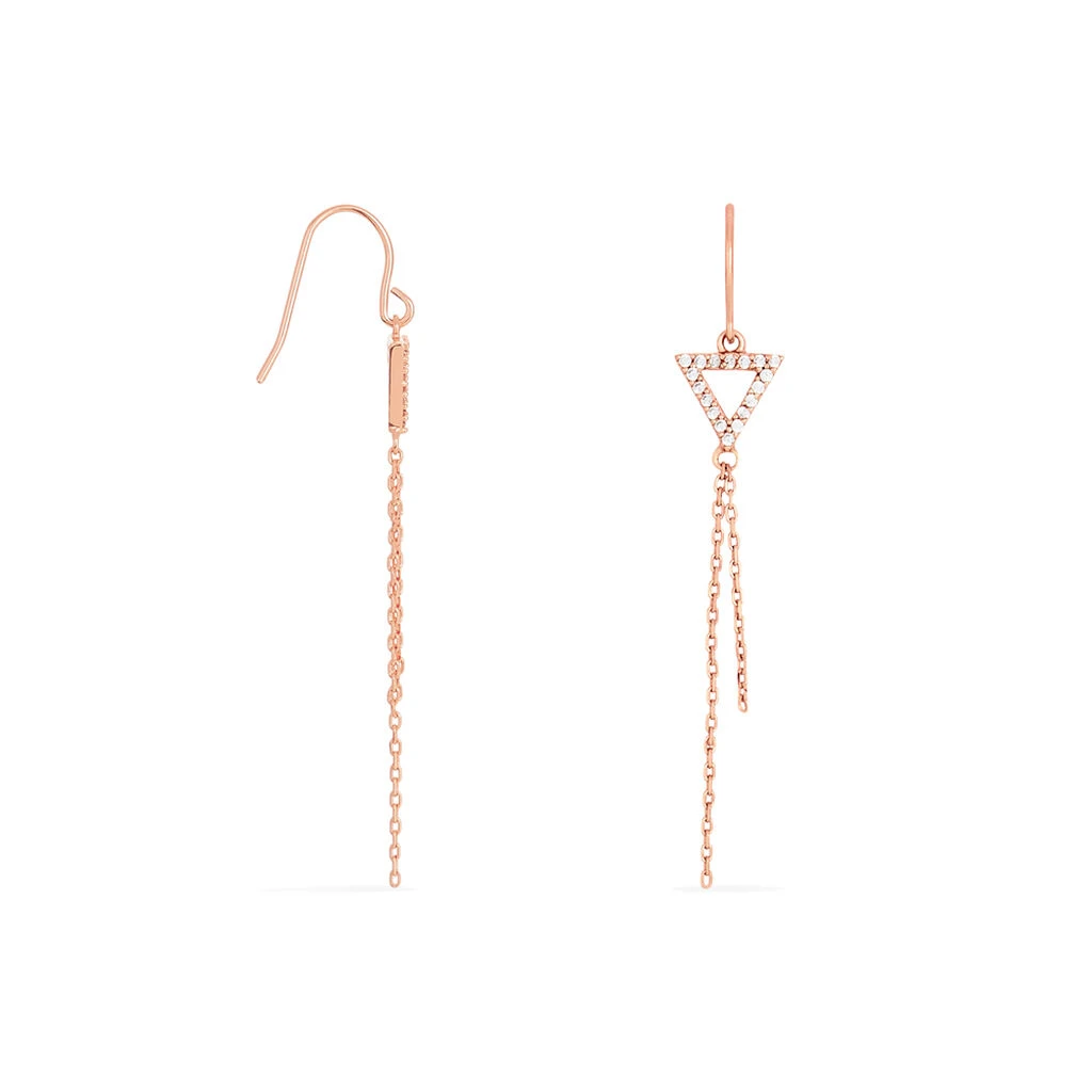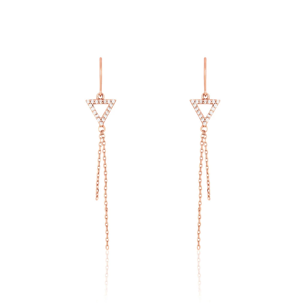 Boucles D’oreilles Argent Rose 925/1000 Triangles Oxyde Et Chaines