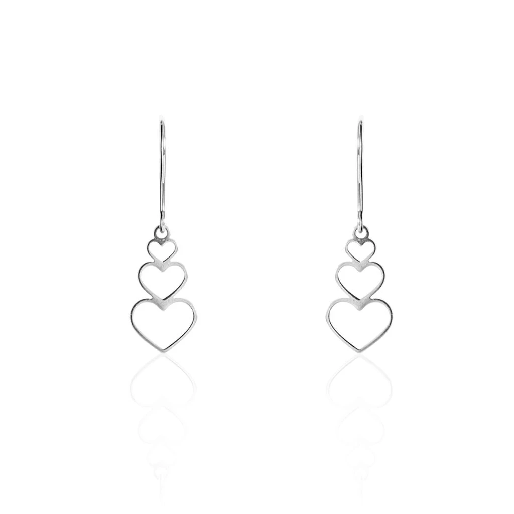 Boucles D’oreilles Pendantes Argent Blanc 925/1000 Triple Coeurs Ajoures