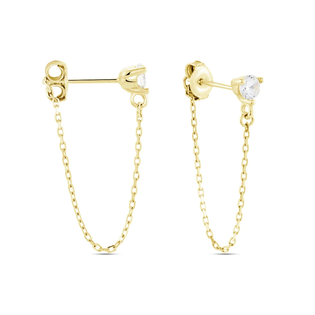 Boucles D’oreilles Pendantes Or Jaune 375/1000 Chaines Oxydes De Zirconium