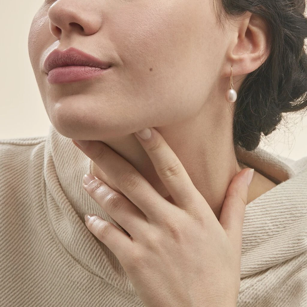 Boucles D’oreilles Pendantes Rose Or Jaune Perle De Culture