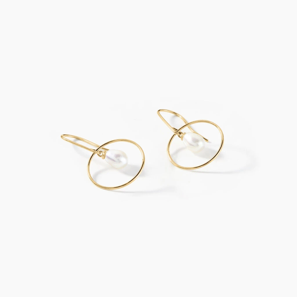 Boucles D’oreilles Or Jaune 375/1000 Cercles Et Perles De Culture
