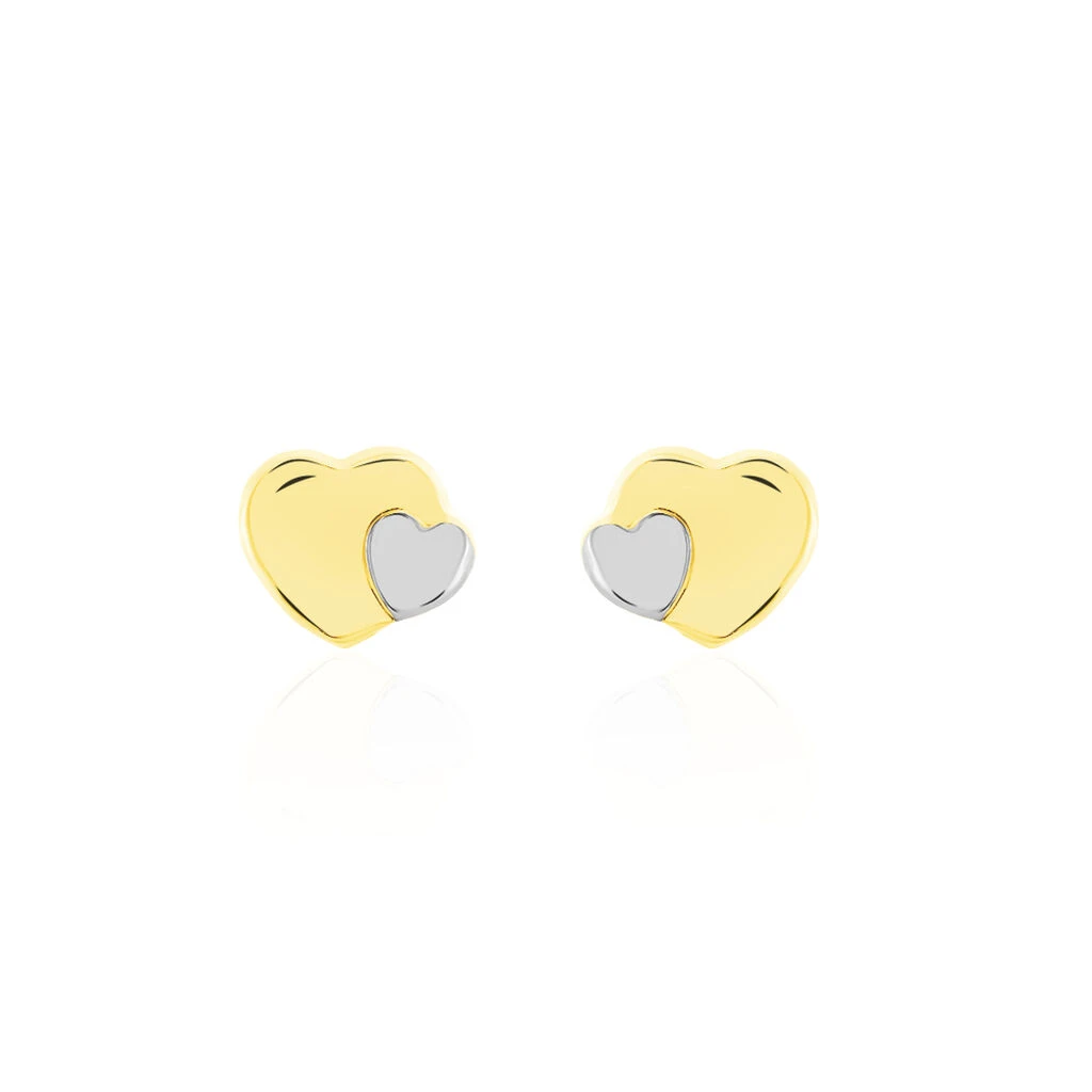 Boucles D’oreilles Or Bicolore 375/1000 Puces Formes Doubles Cœurs