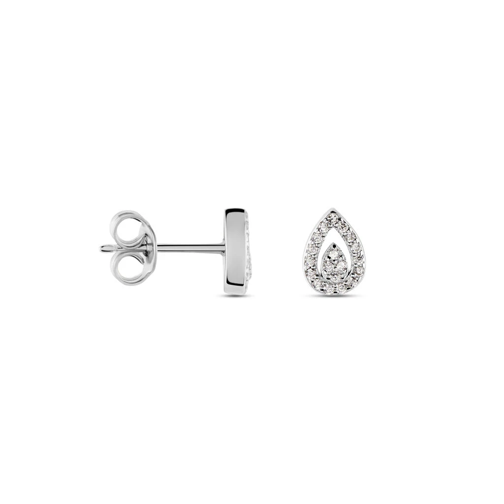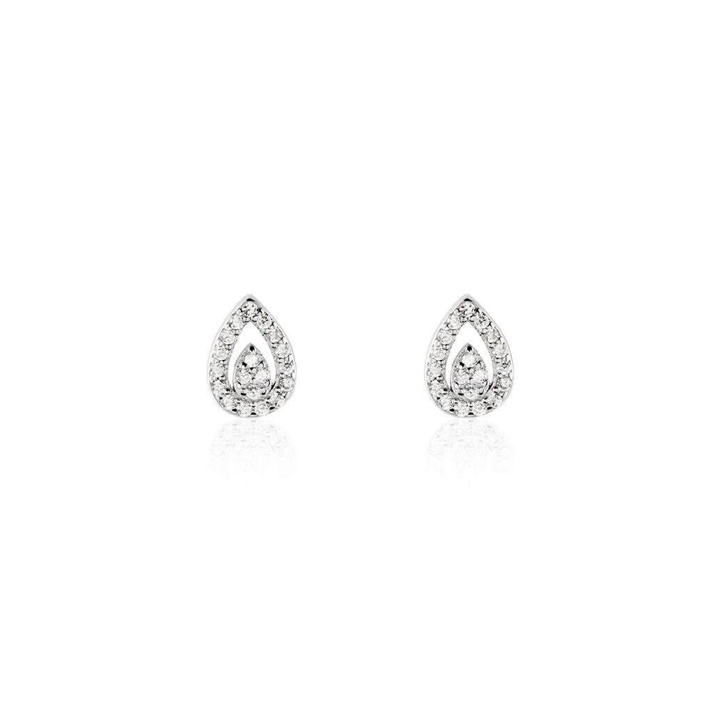 Boucles D’oreilles Puces Argent Blanc 925/1000 Goutte Oxydes De Zirconium Sertis Pavage
