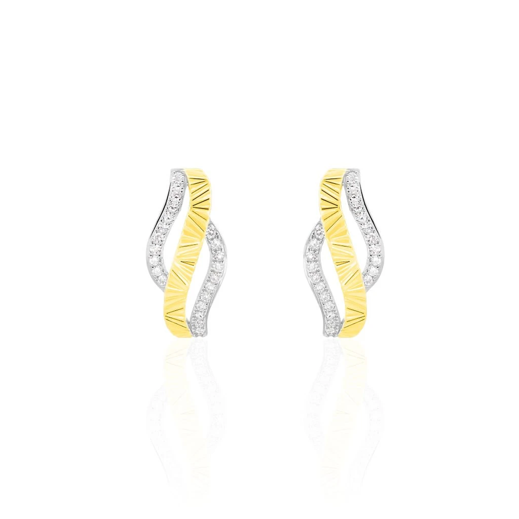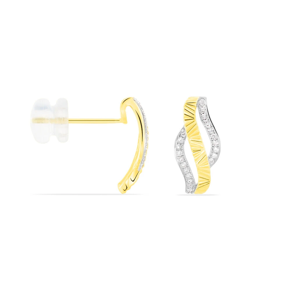 Boucles D’oreilles Or Jaune 375/1000 Puces Forme Vague Effet Diamante Pavage Diamants