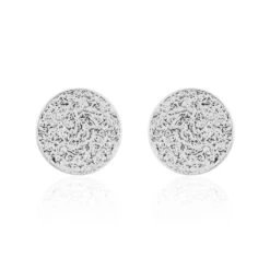 Boucles D’oreilles Puces Argent Blanc 925/1000 Pastilles Effet Martele