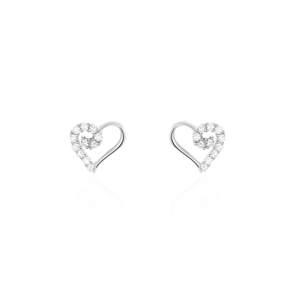 Boucles D’oreilles Puces Daria Cœur Or Blanc Oxyde De Zirconium