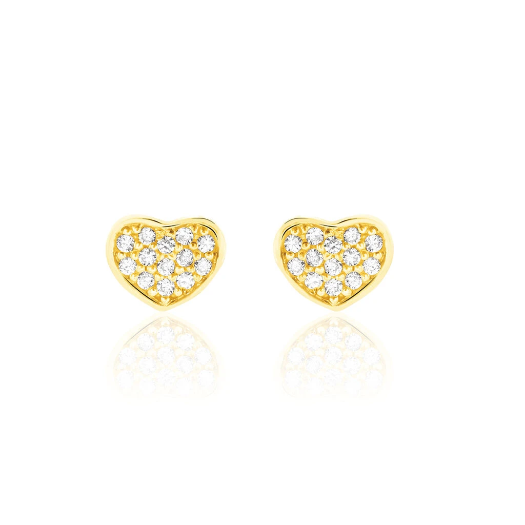 Boucles D’oreilles Puces Daria Coeur Plein Or Jaune Oxyde De Zirconium
