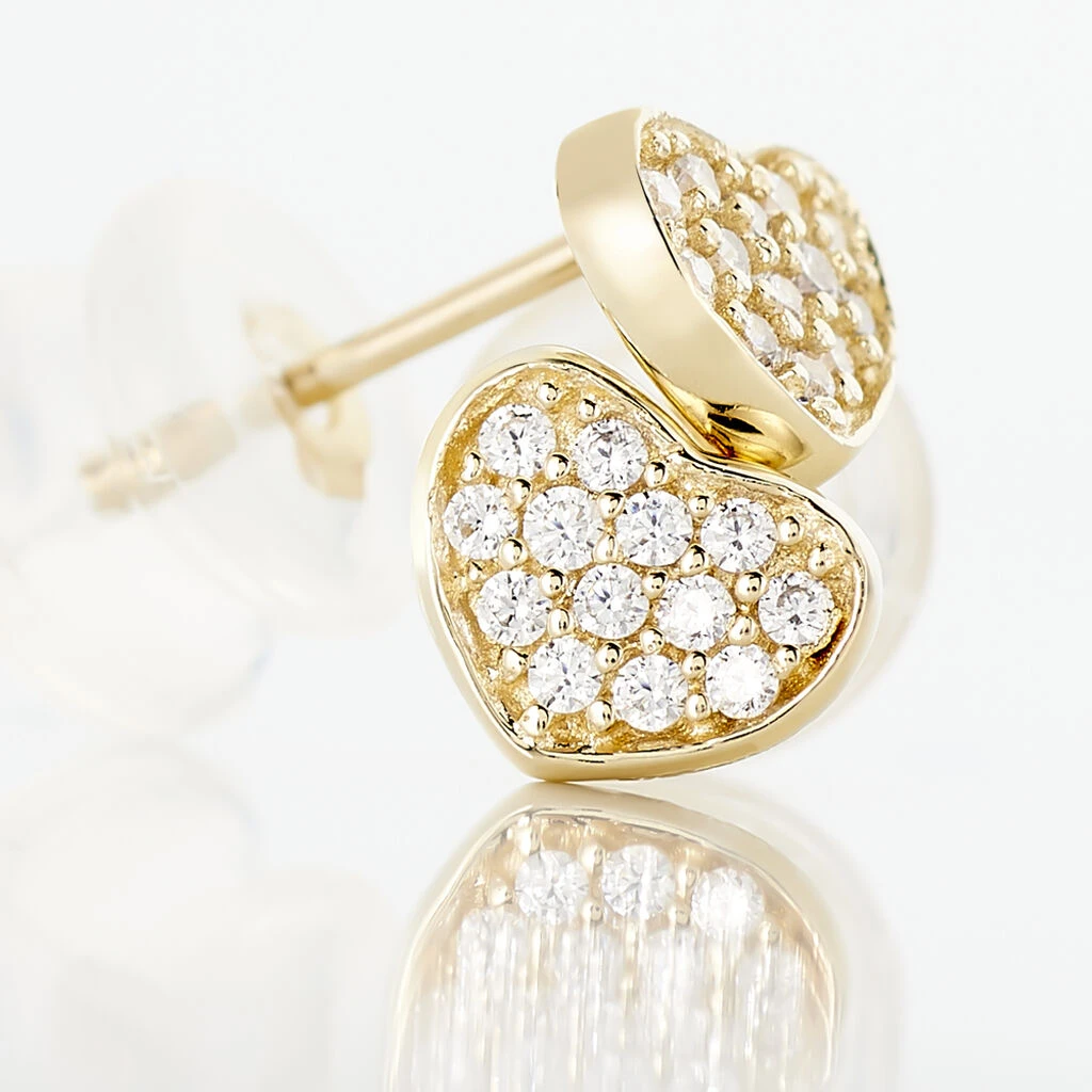 Boucles D’oreilles Or Jaune 375/1000 Puces Formes Cœurs Pavage Oxydes De Zirconium