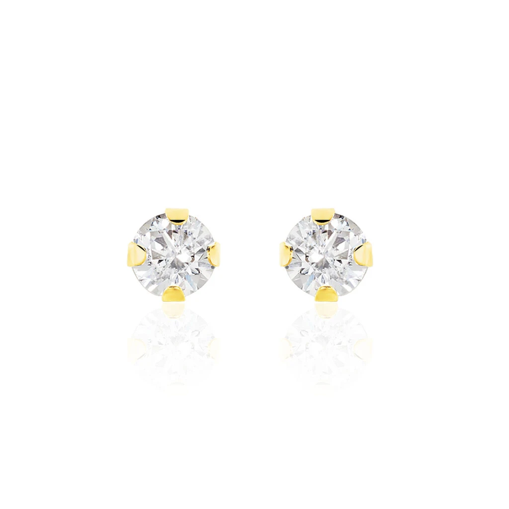 Boucles D’oreilles Or Jaune 375/1000 Puce Oxyde De Zirconium 3mm