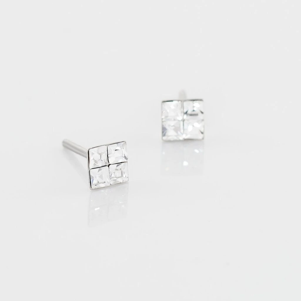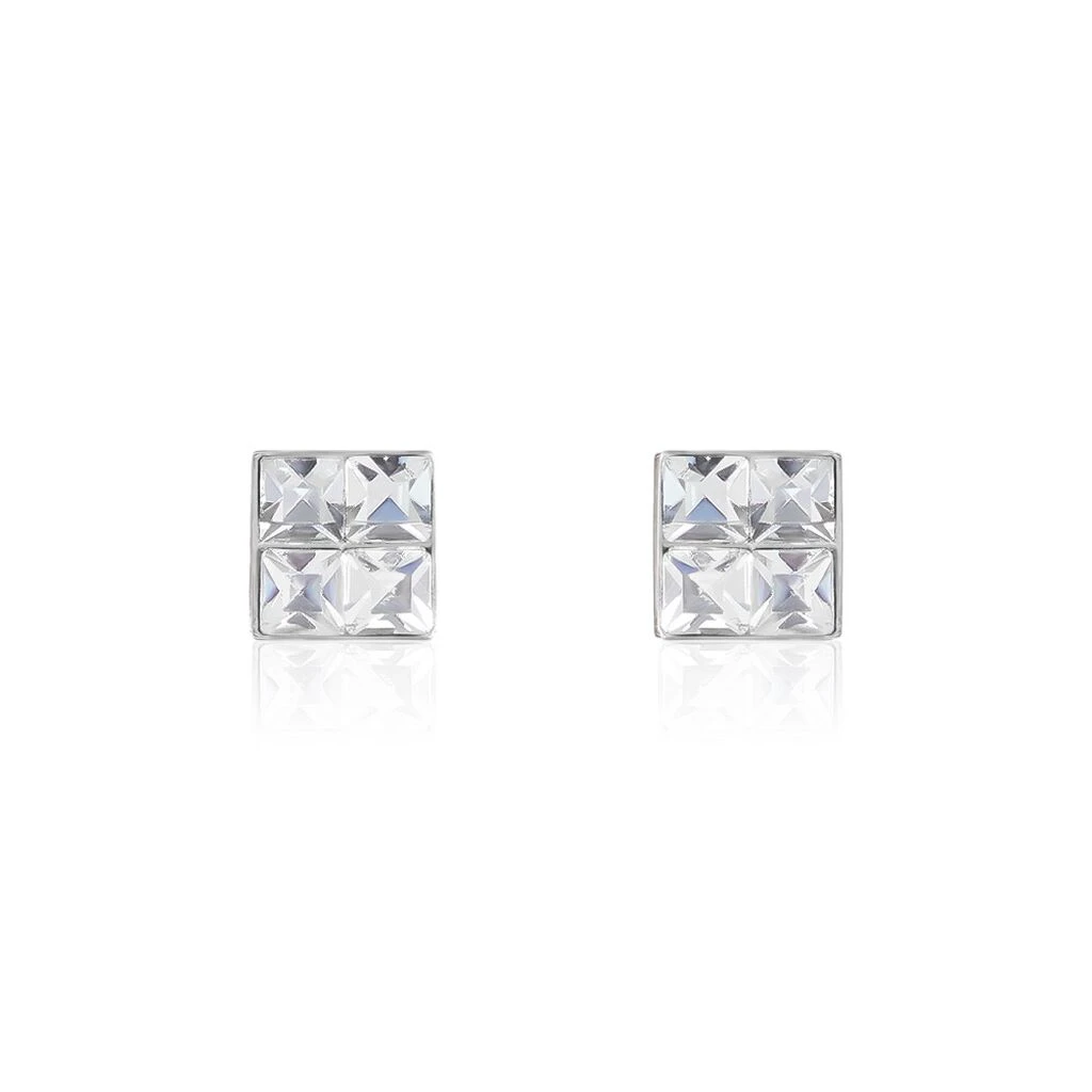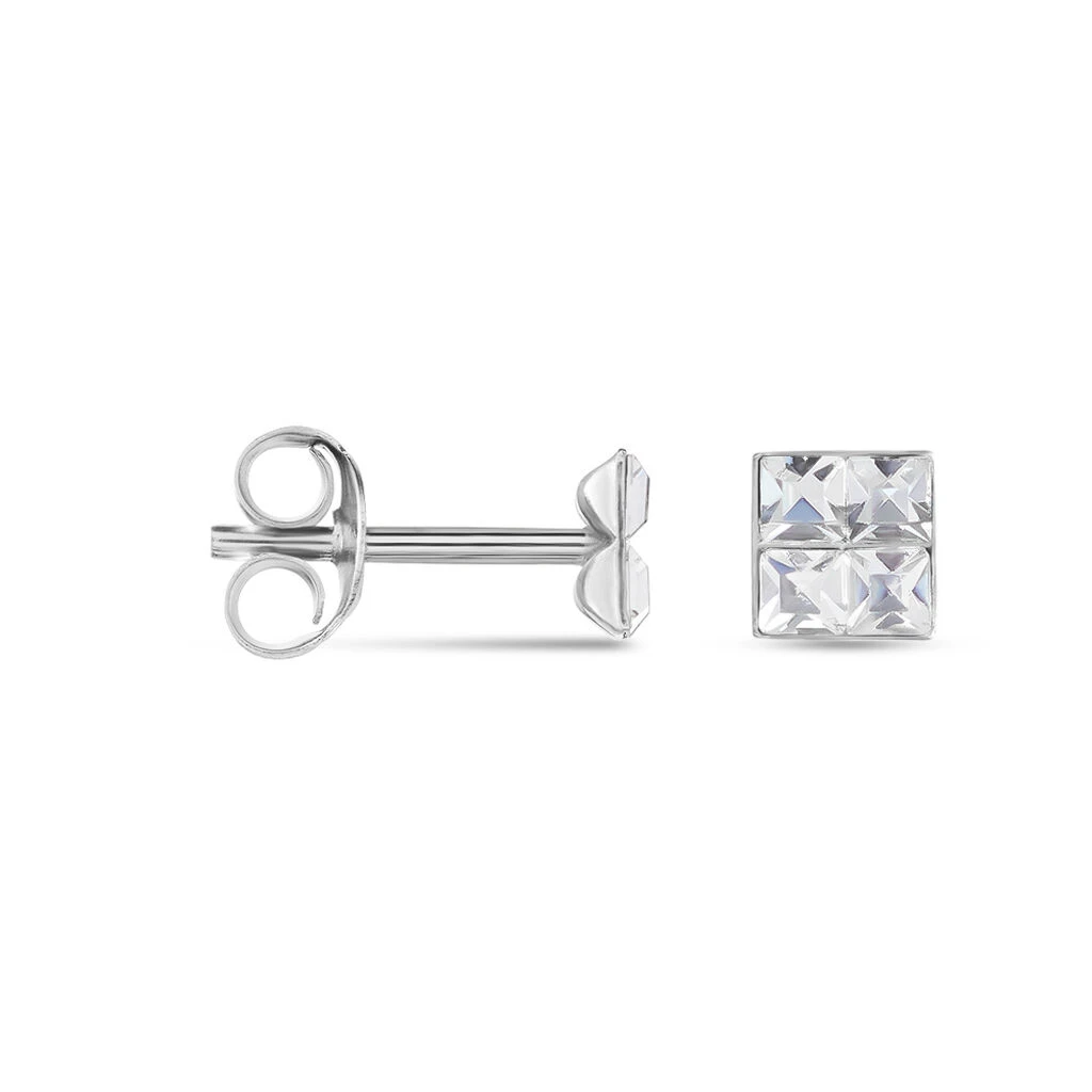 Boucles D’oreilles Puces Argent Blanc 925/1000 Carres 4 Oxydes De Zirconium