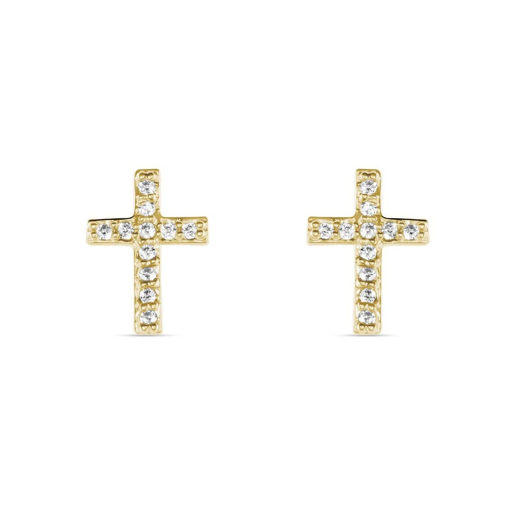 Boucles D’oreilles Puces Plaqué Or Jaune Croix Pavages Oxydes De Zirconium