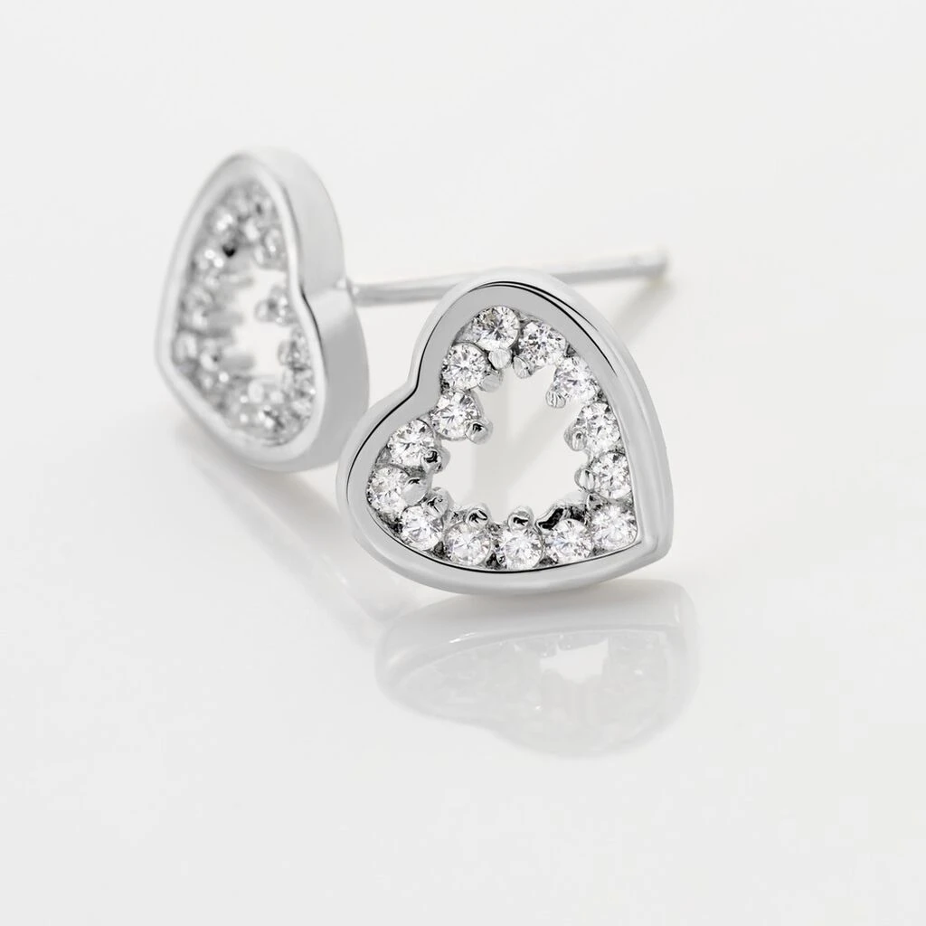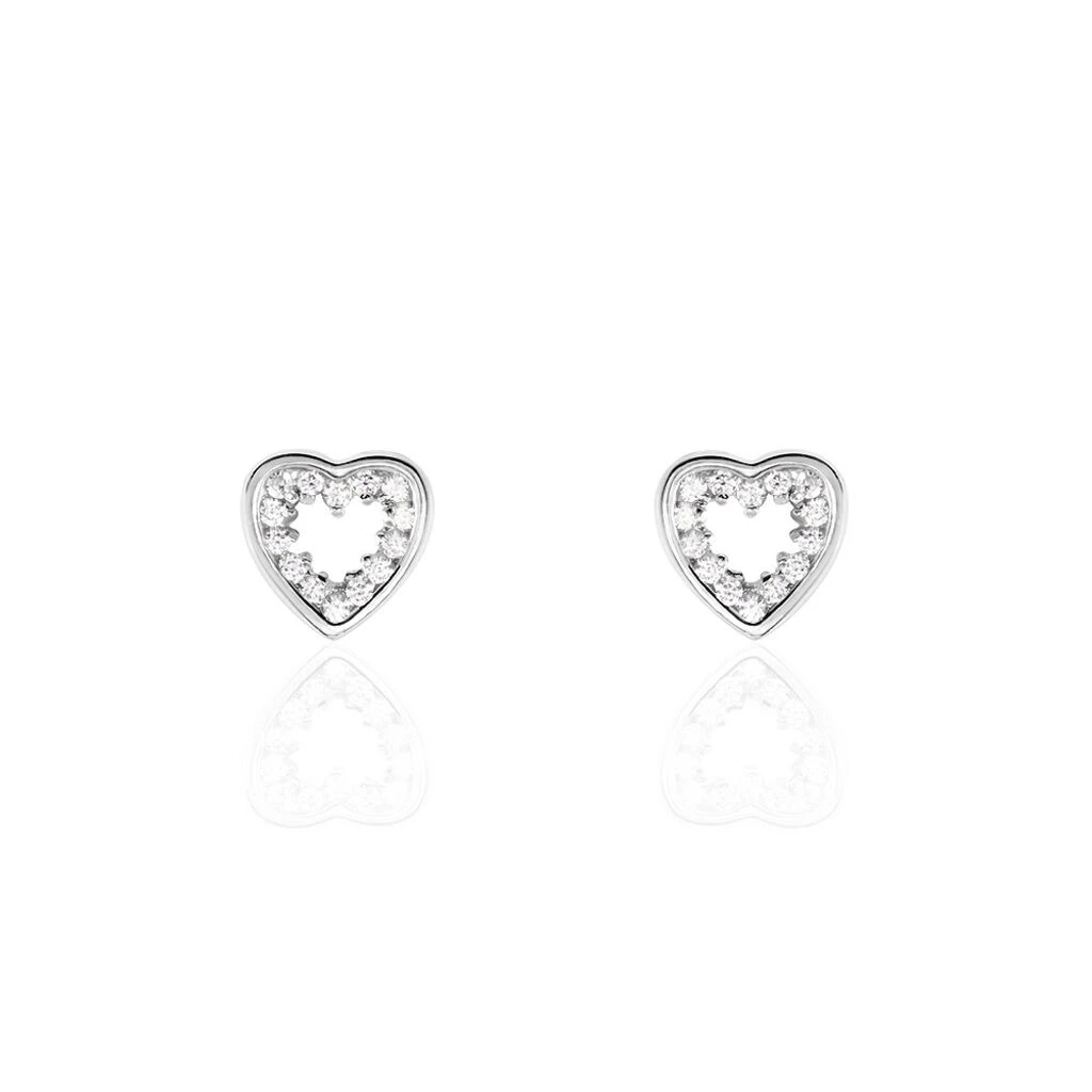 Boucles D’oreilles Puces Argent 925/1000 Cœurs Ajourés Oxydes De Zirconium