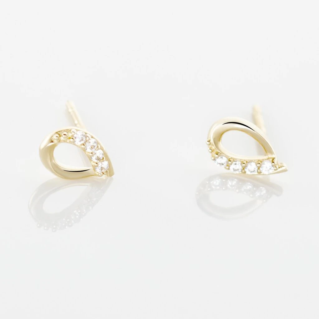 Boucles D’oreilles Puces Or Jaune 375/1000 Gouttes Oxydes De Zirconium