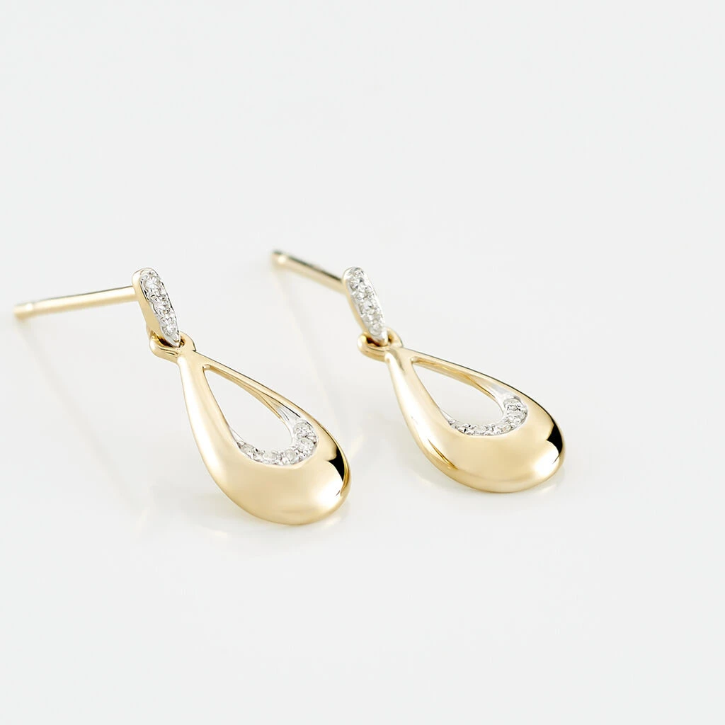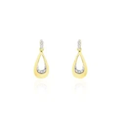 Boucles D’oreilles Or Jaune 375/1000 Formes Gouttes Pavages Diamants