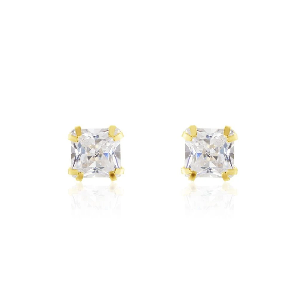 Boucles D’oreilles Puces Or Jaune 375/1000 Oxydes De Zirconium Carre 4mm