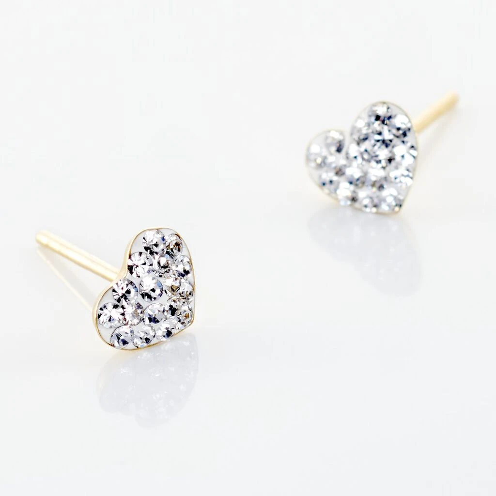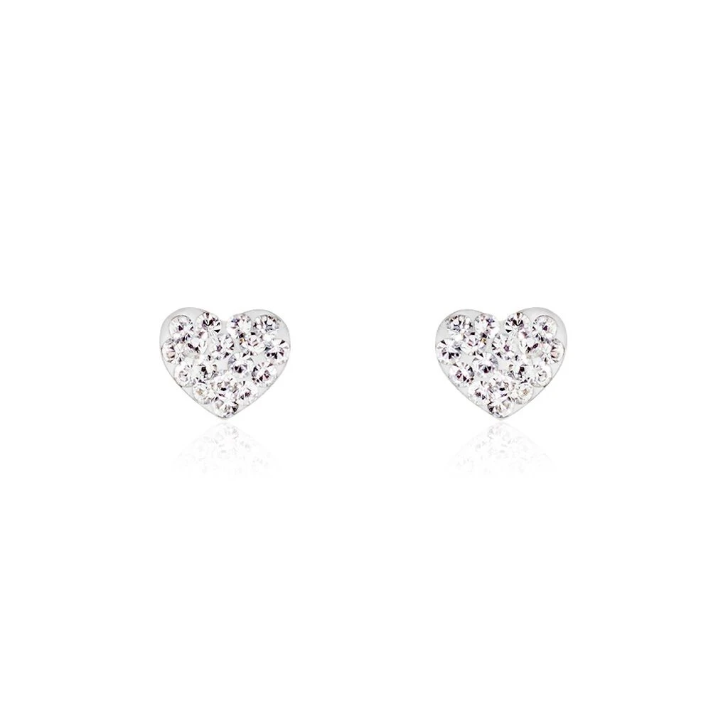 Boucles D’oreilles Or Jaune 375/1000 Cœur Cristal