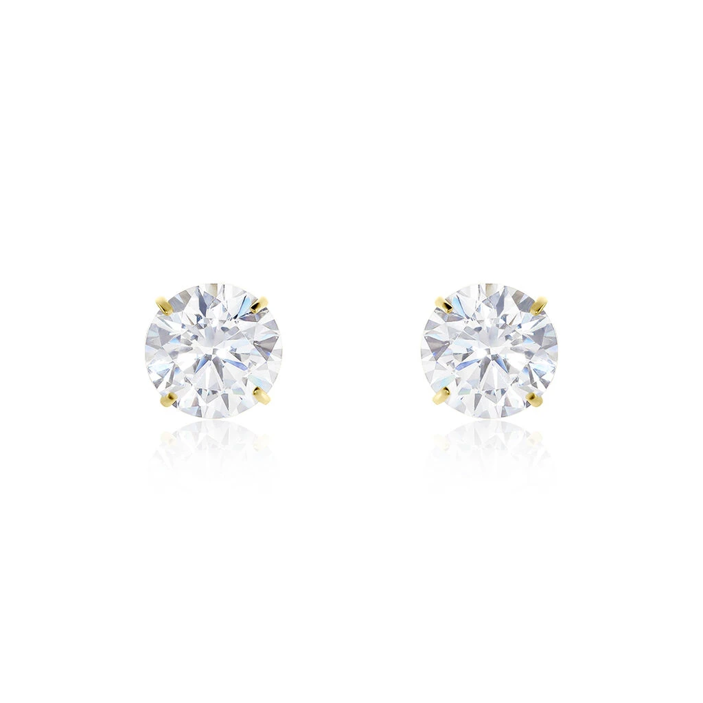 Boucles D’oreilles Puces Or Jaune 375/1000 Oxyde De Zirconium Serti 4 Griffes 6mm