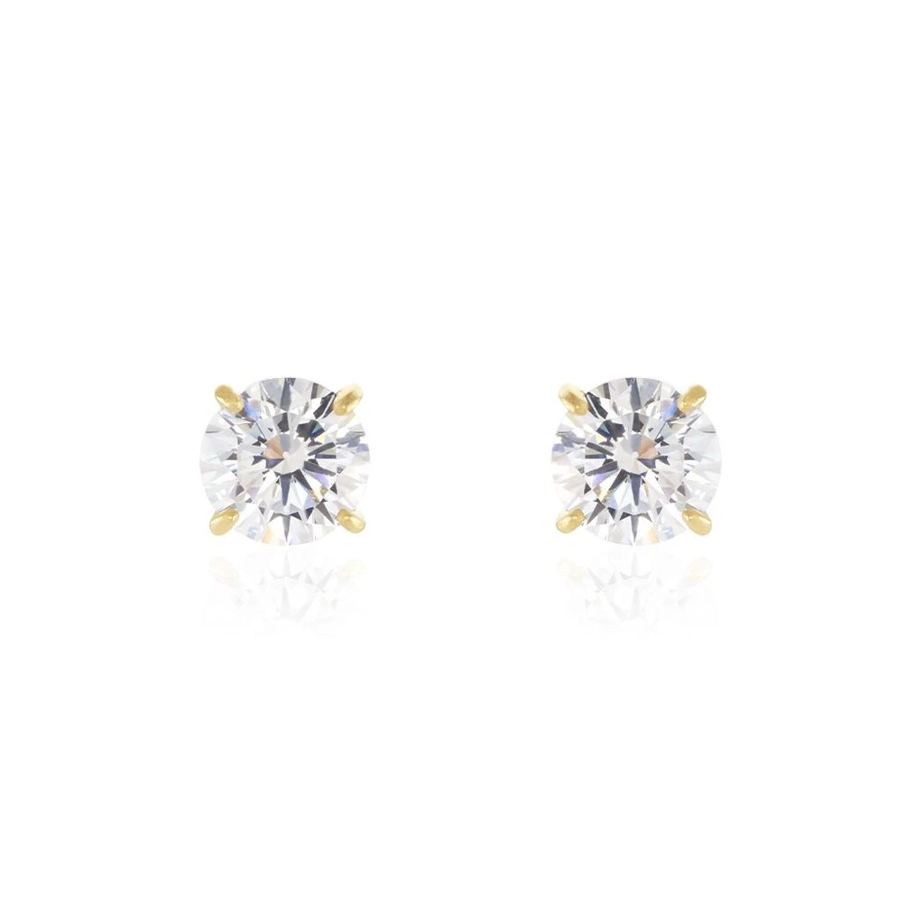 Boucles D’oreilles Puces Plaqué Or Oxydes De Zirconium Blancs Sertis 4 Griffes