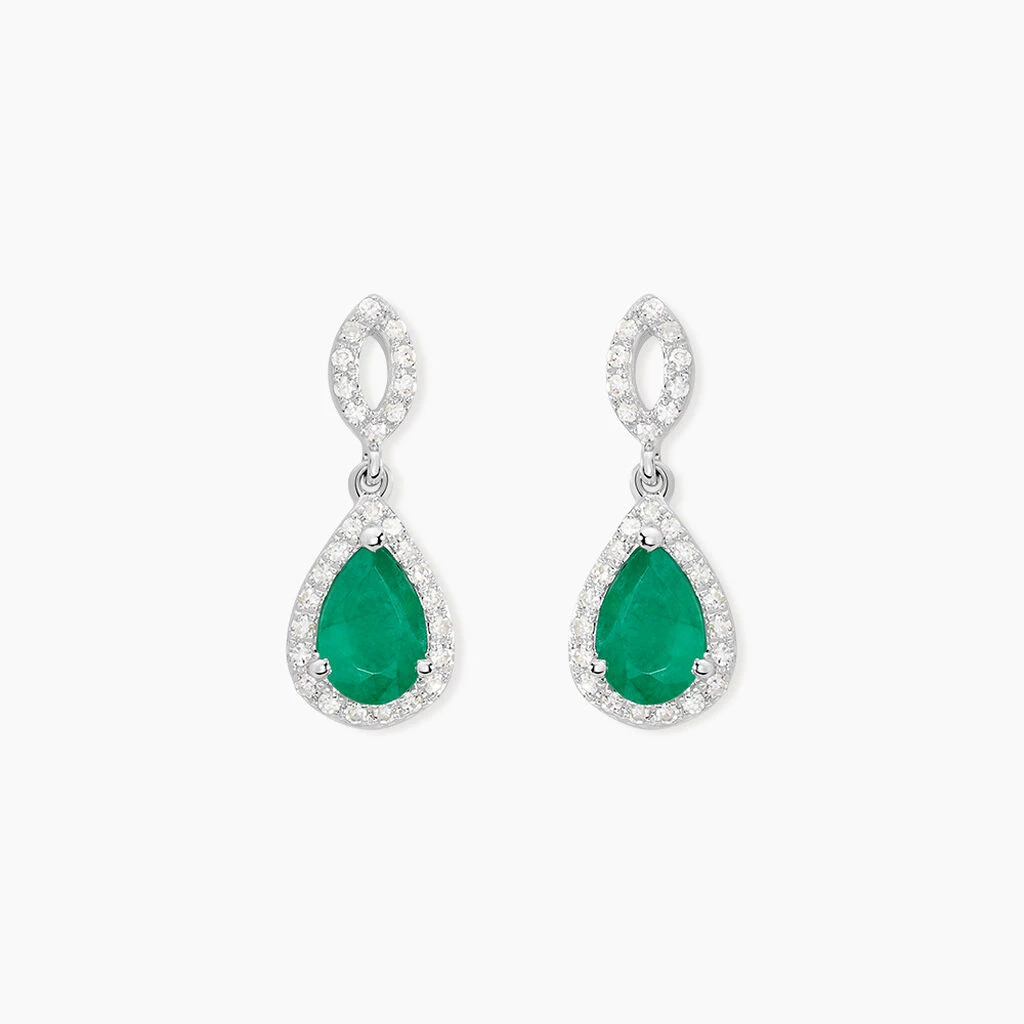 Boucles D’oreilles Or Blanc 375/1000 Sissi Emeraude Et Diamants