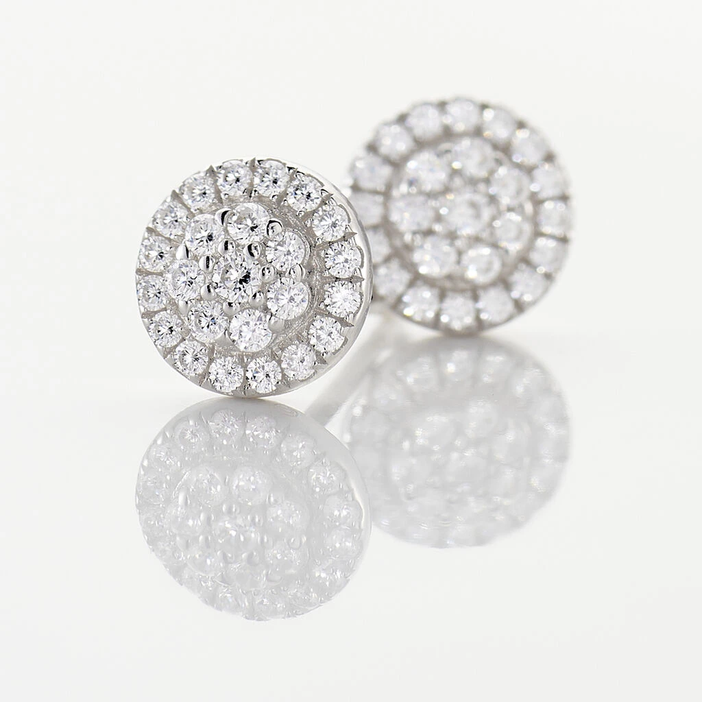 Boucles D’oreilles Puces Argent Blanc 925/1000 Entourage Oxydes De Zirconium