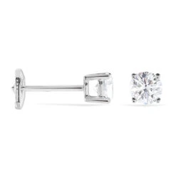 Boucles D’oreilles Puces 4 Griffes Or Blanc Diamant Synthetique