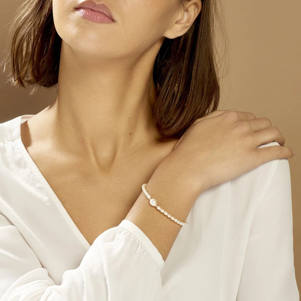 Bracelet Or Jaune 375/1000 Perles De Culture Avec Perle Centrale 3mm Et 7mm 18cm