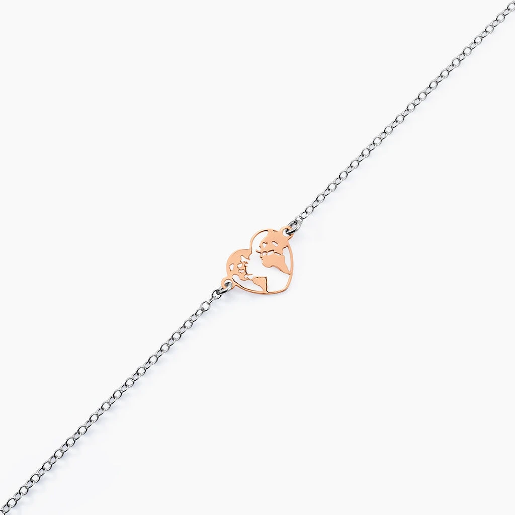 Bracelet Argent Bicolore 925/1000 Carte Forme Coeur Maille Jaseron 19cm