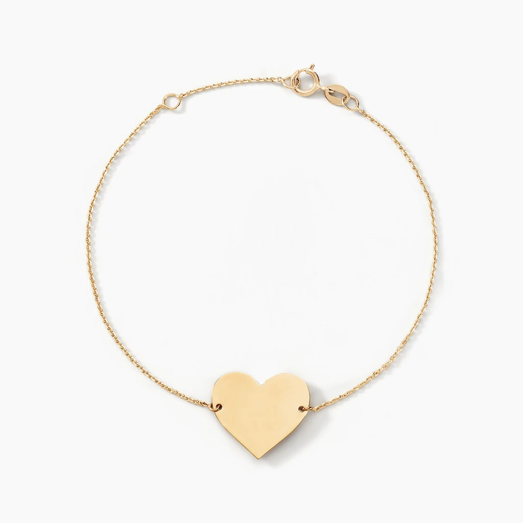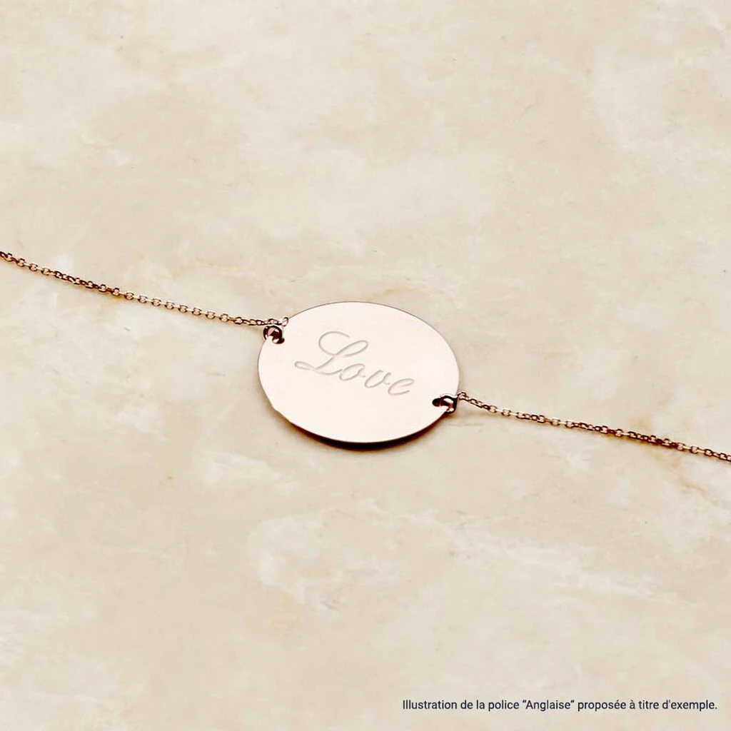 Bracelet Or Jaune 375/1000 Coeur Gravable Maille Jaseron 18cm