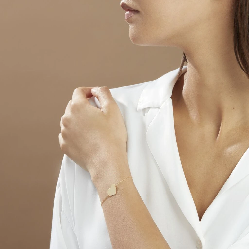 Ce splendide bracelet en or jaune 375/1000ème est à avoir absolument dans sa boite à bijoux. Doté d’une chaîne maille forçat délicate rehaussée par un motif cœur, ce modèle apporte une finition subtile et raffinée à votre look. Il est gravable et mesure 18 cm de longueur.