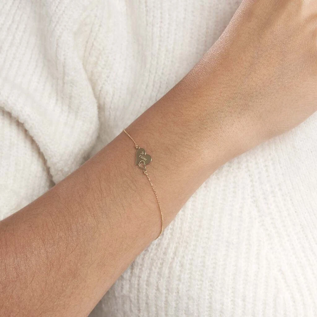 Bracelet Or Jaune 375/1000 Motif Cœur Ajoure Et Cœur Plein Avec Message Je T’aime Maille Jaseron 18cm